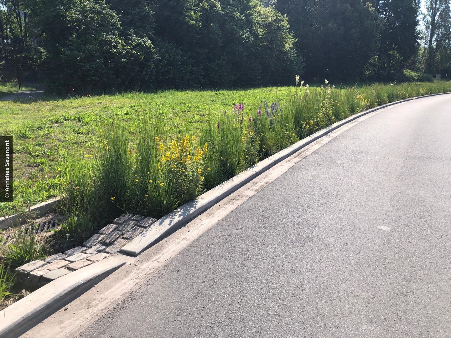 Breekijzer, de vzw die de onthardingscultuur aanjaagt in Vlaanderen, wees er terecht op dat we in Vlaanderen het kostbare regenwater veel te snel afvoeren naar de riolering. Op veel plaatsen is daar met een eenvoudige ingreep - een quick win dus - iets aan te doen. De bestaande kolk blijft behouden, maar door de ruimte errond te ontharden krijgt het water de tijd om te infiltreren. Bonus: de straat wordt een stukje groener.