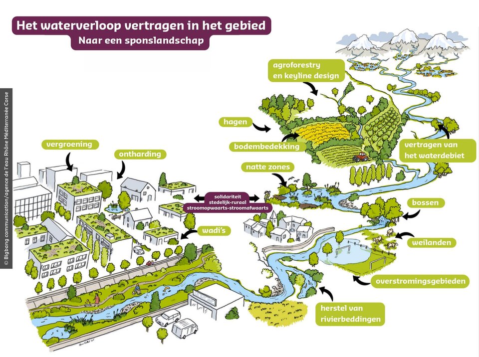 We hebben meer en meer te maken met bodemverarming en wispelturige regenval. Regeneratieve hydrologie biedt een goede strategie om het watervraagstuk in onze landschappen aan te pakken. Op het snijvlak van landbouwkunde, hydrologie en ruimtelijke ordening werkt deze discipline aan het herstel van de infiltratie-, opslag- en verdampingsfuncties die samen voor een groene waterkringloop zorgen. Het ontwerpen is gebaseerd op vijf principes: vertragen, verdelen, infiltreren, opslaan en verdampen. De topografie, de bodem en het bodemgebruik bepalen de implementatie van deze principes. De resultaten van de ingrepen worden geleidelijk zichtbaar: een betere verdeling van de vochtigheid, een grotere draagkracht van de bodem en een veerkrachtiger vegetatie.