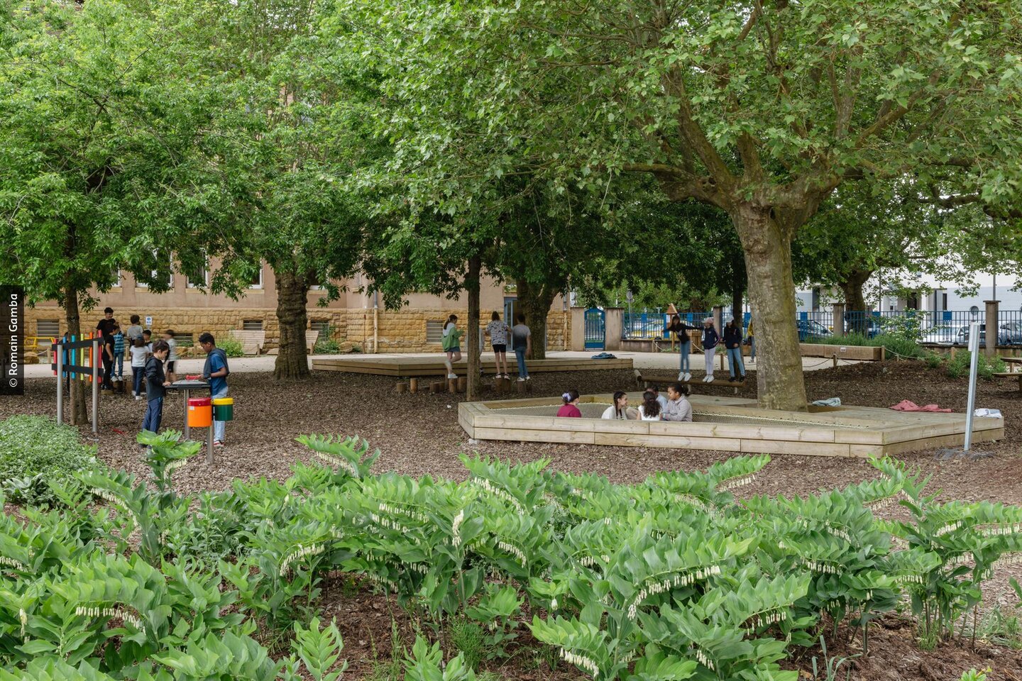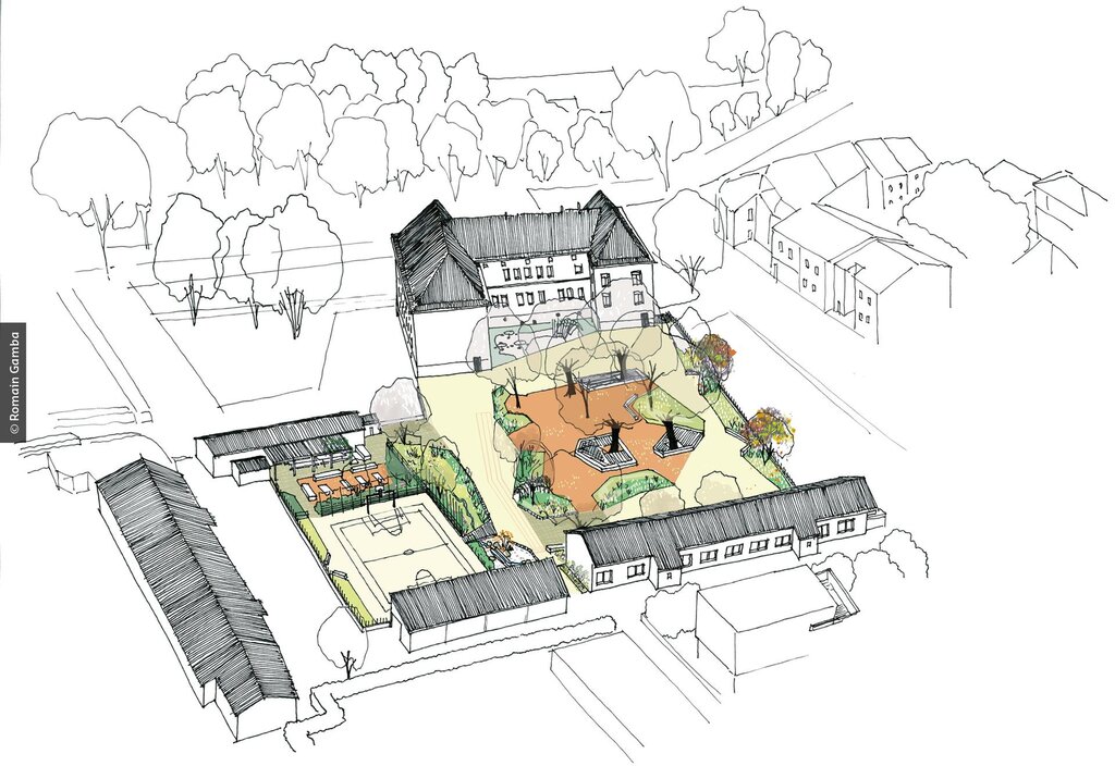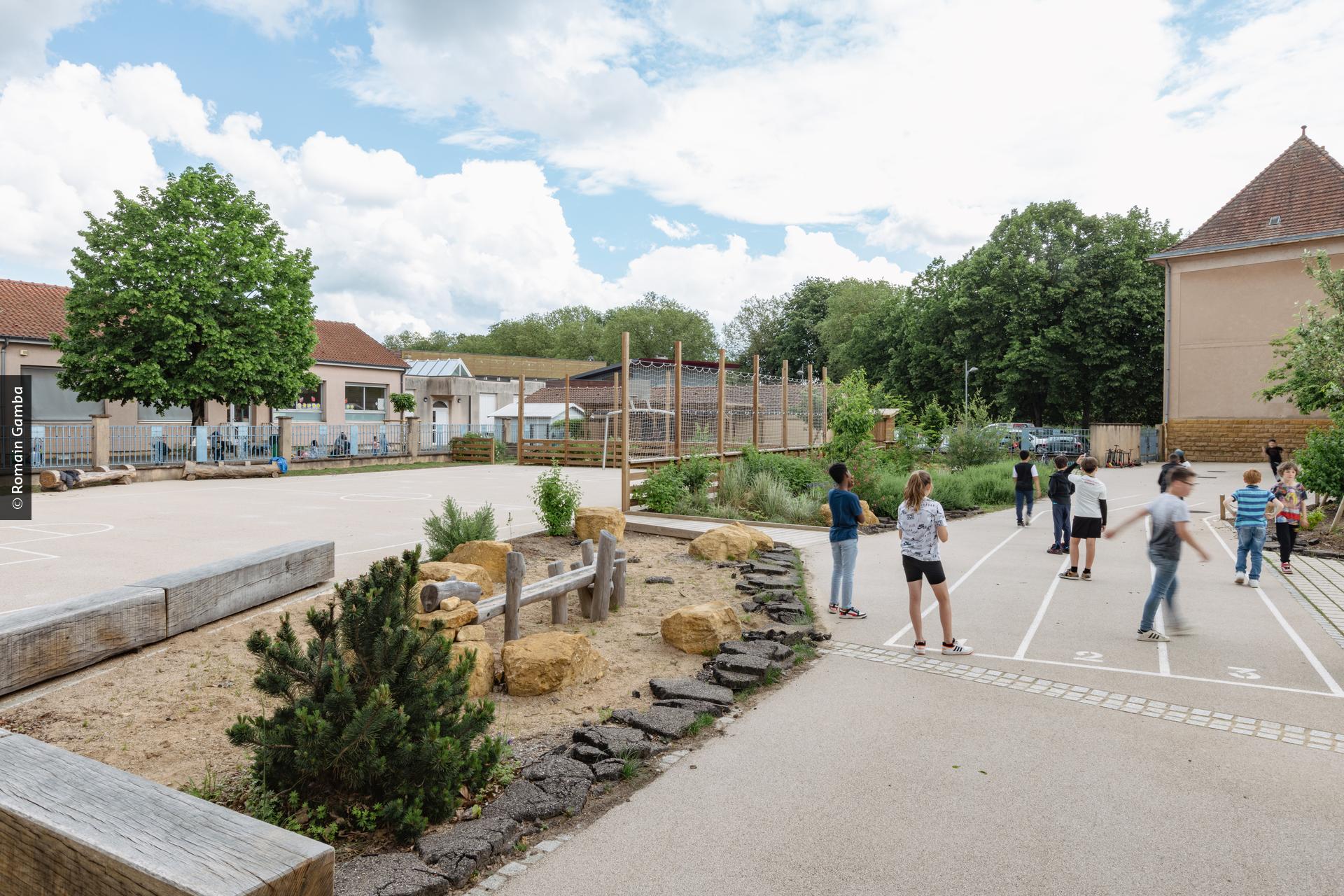 Van 2021 tot 2023 onderging de speelplaats van de school van Ban Saint-Martin, een gemeente in het Franse departement Moselle, een volledige transformatie. Het plein werd een plek die nu volledig beantwoordt aan de verzuchtingen van leerlingen, leerkrachten en technische diensten. De site werd onthard, waardoor het regenwater in de bodem kan dringen. Er kwam ook een weelderige beplanting. De landschapsarchitecten van het bureau Omnibus waren samen met de engineering consultants van het studiebureau ERA verantwoordelijk voor het projectbeheer.