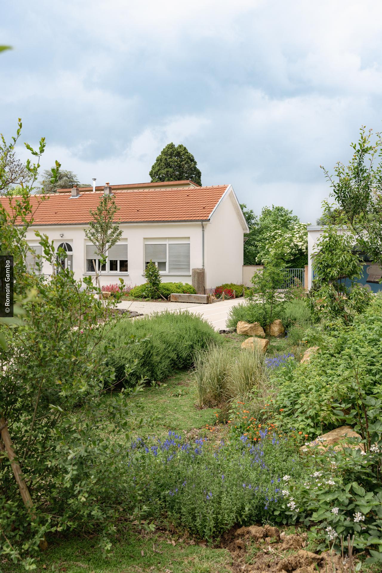 Het schoolplein van de Paul Verlaine-school ligt achter het gemeentehuis van Ban Saint-Martin, een randgemeente van Metz die zich uitstrekt tussen de Moezel en de heuvels van de Côtes de Moselle. De onthardingsmaatregelen voor schoolpleinen stonden in 2021 nog in hun kinderschoenen. Door een samenloop van omstandigheden ging hier een ambitieus en nieuw project van start, waardoor de speelplaats van de school nu een plek is waar de leerlingen in een ontspannen sfeer kunnen uitblazen. Deze werf zorgde ook voor een aanzienlijke ommekeer in de werkgewoonten van gemeentemedewerkers en beleidsmakers. Het project was een verrijkende en menselijke ervaring rond de inrichting van een publieke ruimte.