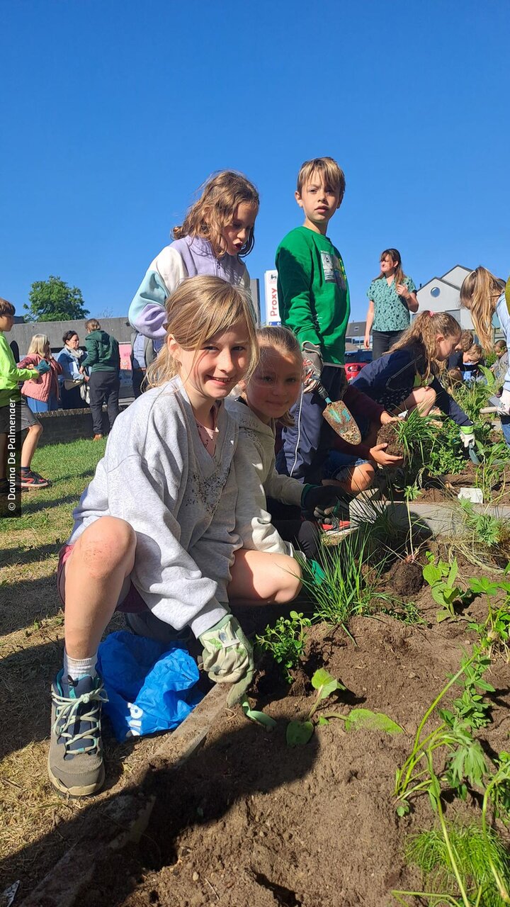 De leerlingen van basisschool De Bosrank kunnen het bevestigen: de temperaturen lopen er vaak hoog op in de zomer. Dat komt omdat de school in het centrum van Zingem ligt. Versteende omgevingen zijn vaak veel warmer als gevolg van de klimaatverandering en ouderen en kinderen zijn extra kwetsbaar voor die hitte. De Provincie Oost-Vlaanderen en de gemeente Kruisem investeren daarom samen in meer gevelgroen op de gemeentelijke gebouwen. Vzw Groene Gevels verzorgde de begeleiding van ontwerp tot ontharding en aanplant. Die aanplant gebeurt dikwijls participatief. Na een lesmoment over groene gevels gingen de leerlingen met kennis van zaken aan de slag met het aanplanten van hun schoolgevel.