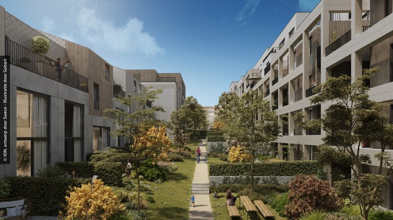 Binnen het masterplan en ontwerp omgevingsaanleg voor Burenberg in Leuven zorgen de collectieve tuinen voor een grote woonkwaliteit in deze binnenstedelijke wijk. In het verlengde van de terrassen van de nieuwe woningen wordt een genereuze gedeelde tuin met eetbare planten en kruiden voorzien.