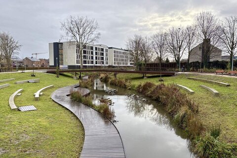 Zo evolueerde het masterplan in vijf jaar tijd naar de realisatie van wijkpark Ten Boomgaard: een klimaatrobuust park waarin de Kerkebeek uitgroeit tot een groen-blauwe ruggengraat voor de toekomstige ontwikkeling van Sint-Michiels.
